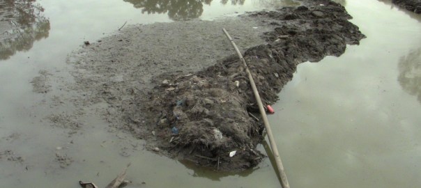 The mass of rubbish in the waters of Brown Park is now obvious to residents thanks to the lowering of water levels.